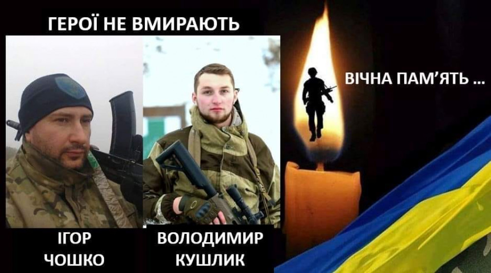 Міський голова Калуша Андрій Найда повідомив про смерть одразу двох захисників. Під час виконання бойового завдання загинули військовослужбовці-калушани Володимир Тарасович Кушлик та Ігор Степанович Чошко.