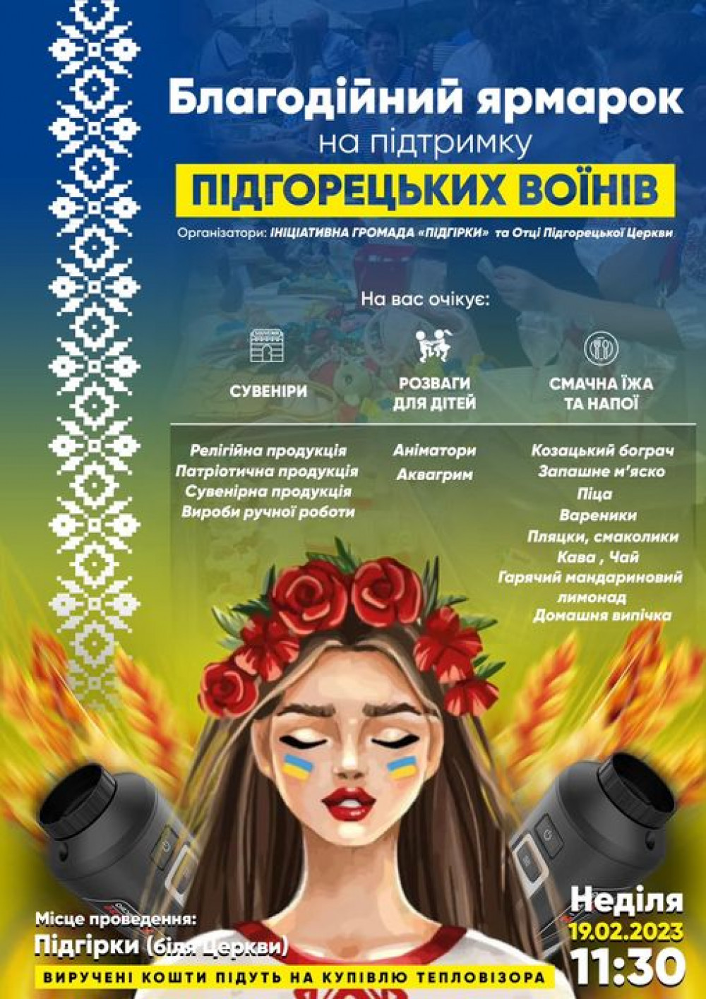 "Запрошую всіх бажаючих долучитись до благодійного ярмарку, який ми проводимо спільно з Отцями Підгорецької церкви на підтримку Підгорецьких воїнів. Буде цікаво, багато смачної їжі та затишної атмосфери. Хто не зможе бути присутнім фізично, але має бажання підтримати наших бійців фінансово може донатити на номер карти: 5168745127794433 Будзан Тетяна",- пише волонтерка.