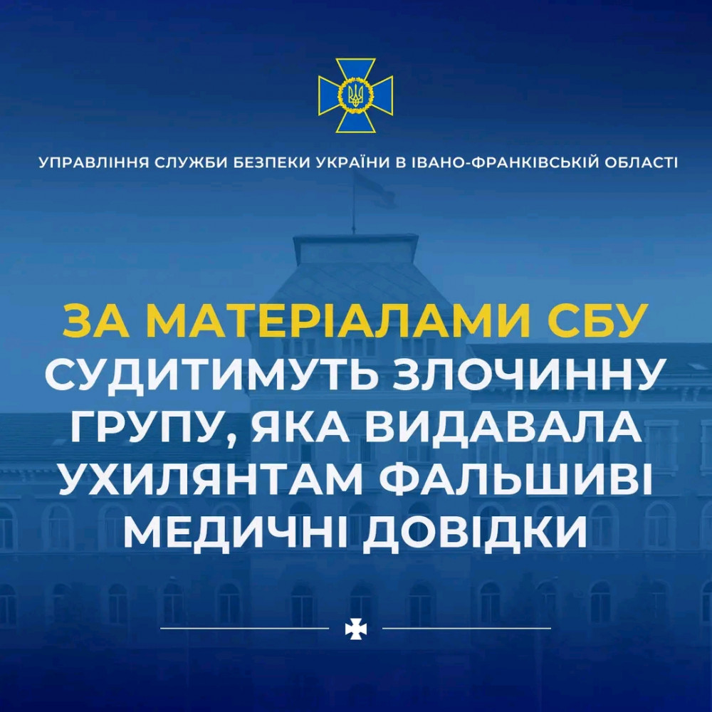 На Прикарпатті за матеріалами СБУ судитимуть учасників організованої злочинної групи, яка забезпечувала ухилянтів фіктивними медичними довідками.