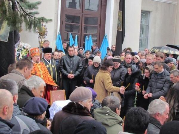 У палаці культури "Мінерал" триває прощання з убитим на Майдані кулею снайпера 30-річним калушанином, "свободівцем" Ігорем Дмитрівим.