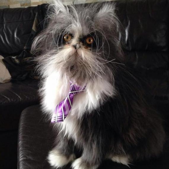Вона постійно скуйовджена і яскраві жовті очі роблять його схожим на божевільного професора.