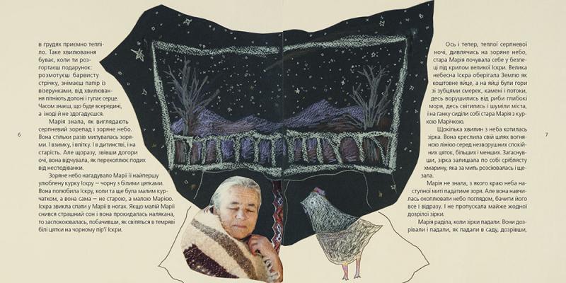 Головною героїнею цієї історії є не дівчинка, а бабуся Марія, яка живе разом зі своєю куркою Марічкою. Марія вимушена відправитися в темний ліс і зіштовхнути віч-на-віч зі своїми страхами, щоб допомогти своїм близьким друзям. На жінку та її домашню улюбленицю чекають цікаві пригоди, відкриття і небезпеки. Видання містить оригінальні ілюстрації, які розкривають зміст тексту. Це книга про дитинство і старість, єдність людини і природи. Вона вчить справжній дружбі, сміливості і кмітливості. Книга увійшла до каталогу "Білі круки" у 2017 році.