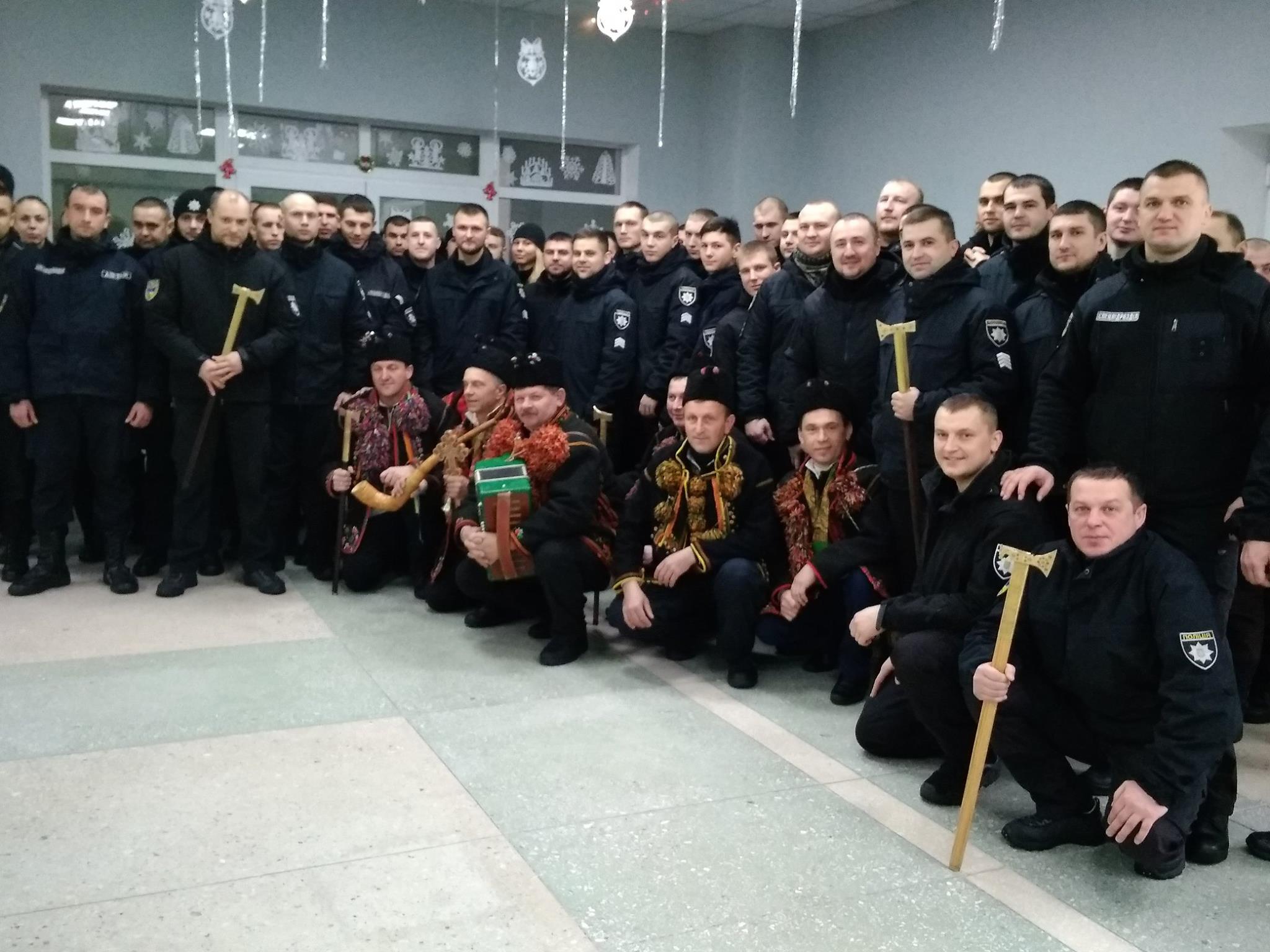 У супроводі офіцерів ОЦ ЦВС міста Сєвєродонецьк та групи штабу ОТУ “Північ” до бійців батальйону поліції особливого призначення м. Сєвєродонецьк завітали файні колядники з гуцульської Верховини. Про це повідомили на сторінці CIMIC Severodonetsk - Joint Centre.