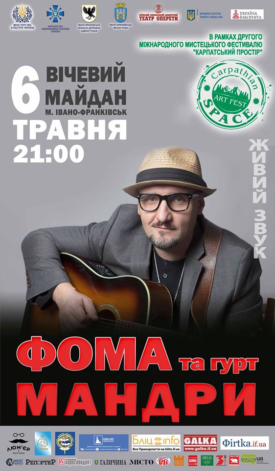 6 травня о 21:00 в межах ІІ Міжнародного мистецького фестивалю "Карпатський простір" та до Дня міста на Вічевому майдані відбудеться концерт Фоми та гурту "Мандри"