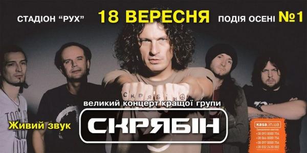 18 вересня в м. Івано-Франківську відбудеться без перебільшення подія осені №1. Великий концерт кращої української групи СКРЯБІН.