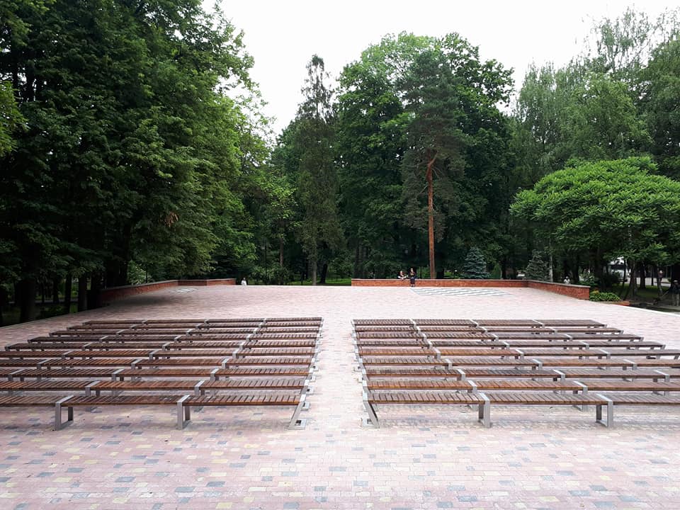 Зокрема біля сцени облаштували зручний майданчик і лавочки, а також шахматну дошку для гігантських шахів. Також відемонтували саме приміщення сцени.