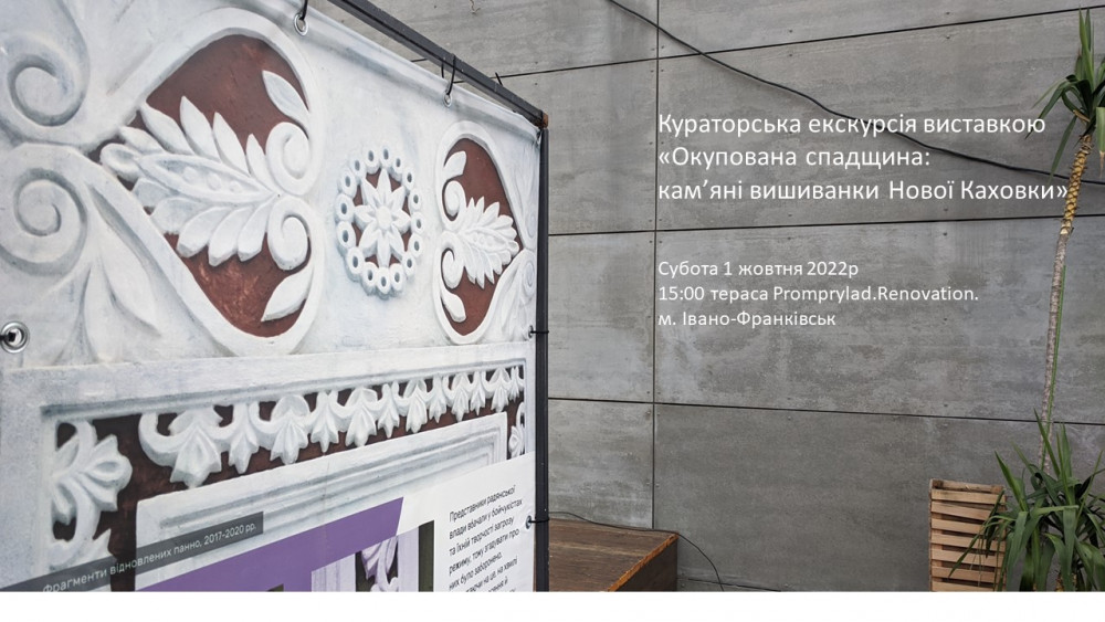 У суботу 1 жовтня на терасі інноваційного центру Promprylad.Renovation у Івано-Франківську відбудеться кураторська екскурсія виставкою "Окупована спадщина: кам'яні вишиванки Нової Каховки".