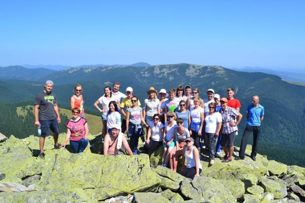 З цієї нагоди колектив здійнив похід у гори - працівники відправилися на гору Хом'як.