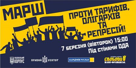 7 березня о 15 год. під стінами адмінбудівлі відбудеться марш «Проти тарифів, олігархів та репресій»