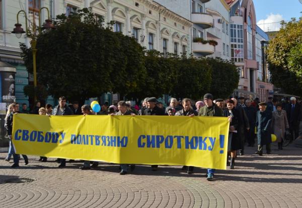 Опісля учасники віче вирушили Маршем центральною вулицею Івано-Франківська до Меморіального скверу під гаслами "Ні політичним репресіям!" та "Свободу Юрію Сиротюку!".