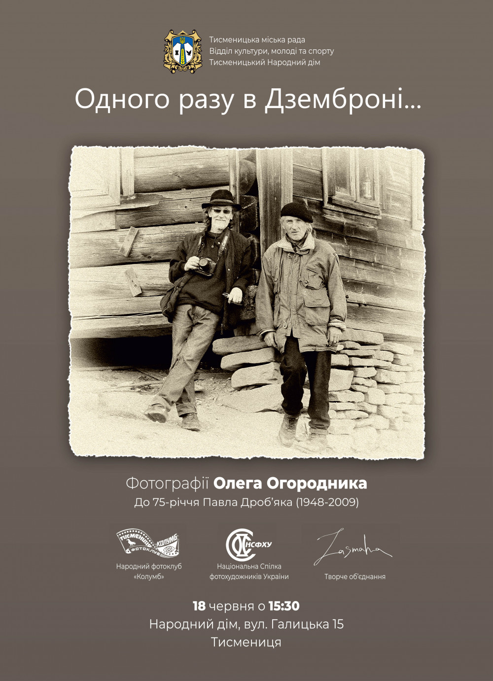 18 червня о 15:30 в Народному домі Тисмениці за адресою вул. Галицька 15 - відкриття фотовиставок "Одного разу в Дземброні...", авторства львів’янина Олега Огородника, і Best of ФотоПАВЛО, приурочених до 75-річчя Павла Дроб'яка (1948-2009), багаторічного учасника колективу Народного фотоклубу «Колумб».