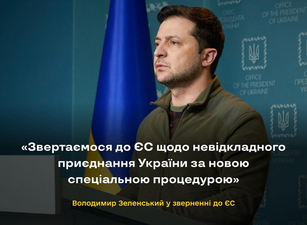 Президент Володимир Зеленський звернувся до Європейського союзу щодо приєднання України за спецпроцедурою.