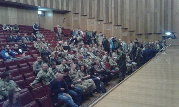 Спочатку вимоги мітингувальників вислухав заступник міського голови Олексій Кайда, а потім до бійців вийшов Руслан Марцінків і запросив всіх для розмови в зал засідань.