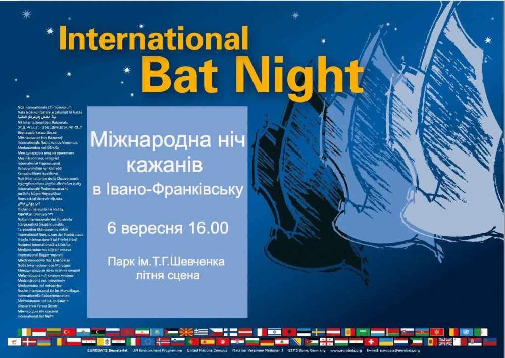 Український центр реабілітації рукокрилих спільно з Дністровським регіональним ландшафтним парком організує в Івано-Франківську свято до Міжнародної ночі кажанів.
