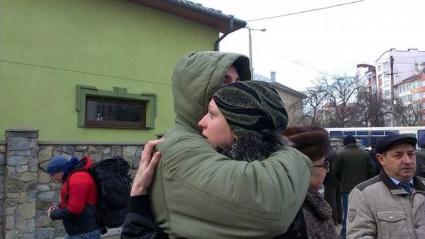Підтримати мобілізованих прийшли бійці 80 аеромобільної бригади Тарас та Віталій, які зовсім недавно повернулись з Донецька. Хлопці кажуть, що насправді ворог не такий страшний, як може здатись і його не варто боятися. Військовозобов’язаним радять триматись разом і берегти себе, а їх родичів просять молотись і зберігати спокій.