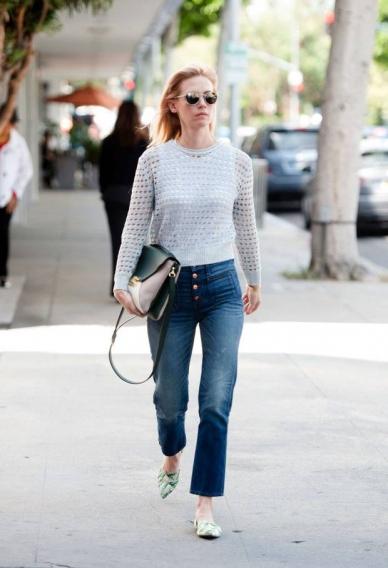 Актуальні в цьому сезоні джинси-кльош видозмінилися - вони стали вужчі та коротші. Така форма джинсів додає образу цікавий силует. Дозволяє продемонструвати витончені щиколотки та гарне взуття.