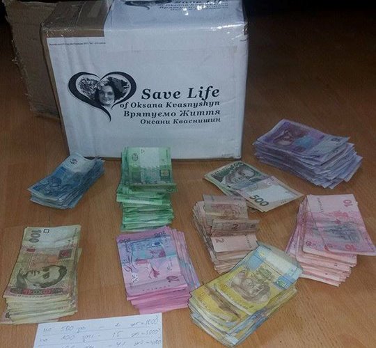 "15709 гривень. Сума, яку зібрала благодійна вистава для Оксани Кваснишин. Ми дякуємо усім, хто долучився. Хто почув, відчув і допоміг... Люди, ви неймовірні! Ваші Серця - воістину безмежні! Ваша Щирість і Доброта -непідробні.... Хлопчик, 10-13 років, підхрамуючи, тягнув ніжку, віддав свої останні 23 гривні... Дитино, ми не знаємо хто ти, але нині ти підкорив наші душі", - розповіла Маланюк.