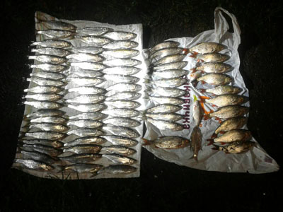 На момент затримання браконьєрів їхній улов складав 76 рибин вагою 2,5кг. Сітка була з дрібним вічком, тому й риба була невеличкою: 63 верховодки, 10 краснопірок, 1 плітка та 2 ляща. Збитки, завдані браконьєрами, складають 2176 грн.