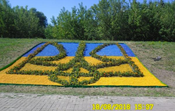 Департаментом житлової, комунальної політики та благоустрою, було виконано роботи з влаштування клумби у вигляді "Герба" на вулиці Надрічній.