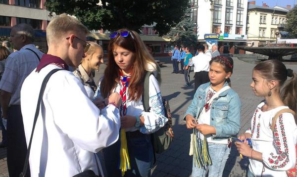 На День Державного Прапора іванофранківцям роздали 300 метрів синьо-жовтої стрічки