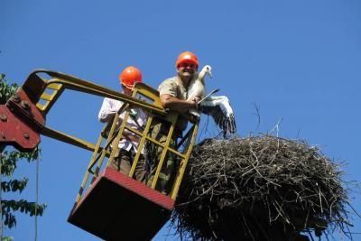 За традицією, у селі Блюдники Галицького району на Івано-Франківщині орнітологи за підтримки енергетиків провели кільцювання молодих птахів білого лелеки.