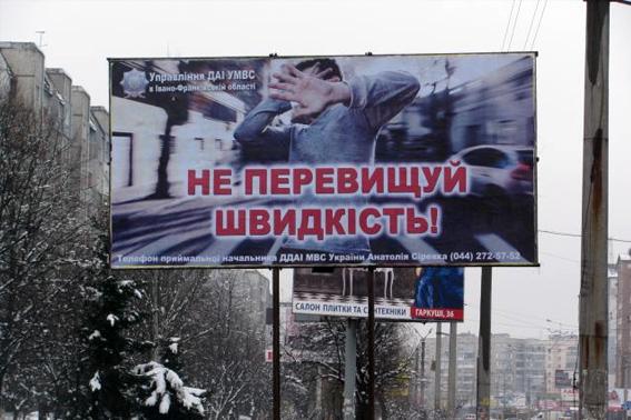 На обочинах доріг області та обласного центру Івано-Франківська працівниками Державтоінспекції встановлено білборди, темою яких є профілактика аварійності, зокрема дотримання водіями швидкісних режимів в процесі дорожнього руху та безпека перевезення малолітніх дітей, яка полягає в необхідності кріплення дитячих крісел.