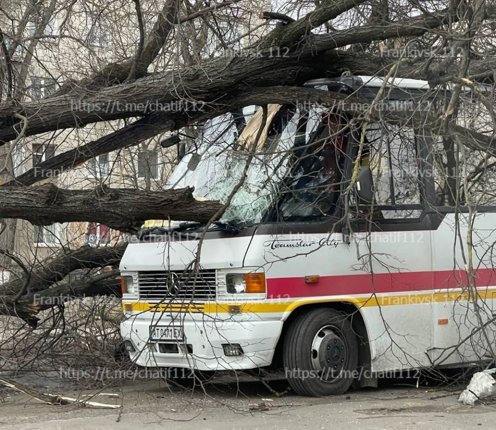 - Бурштин, в результаті падіння дерева пошкоджено маршрутний транспортний засіб (автобус), який знаходився на стоянці.