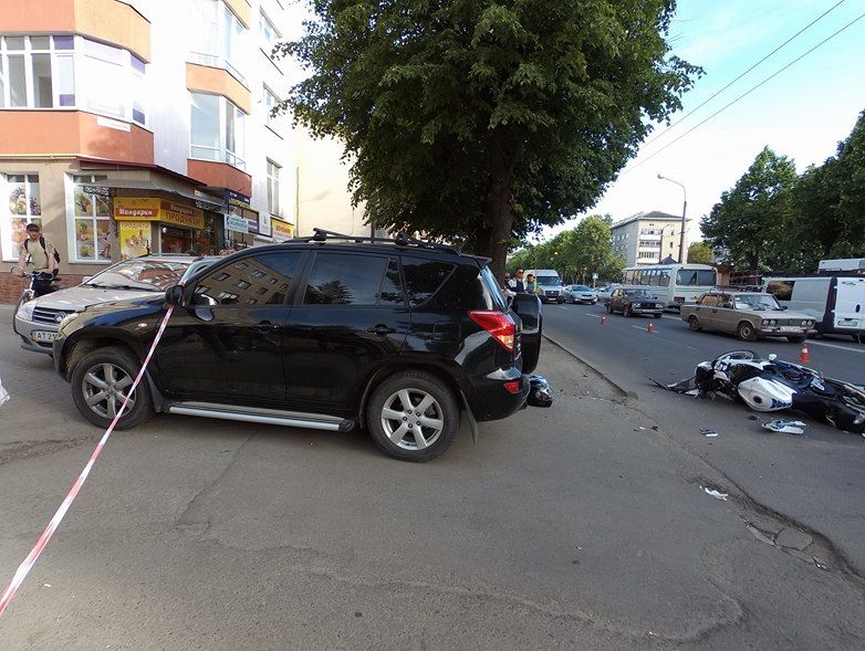 На Галицькій зіткнулися позашляховик і мотоцикл. Троє людей у лікарні