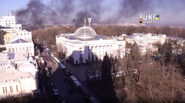 "На Грушевського зі сторони барикад запалили шини. На самій вулиці силовиків як мурах!" – пише він.