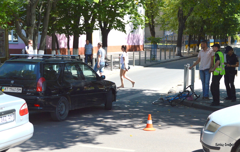 На Грушевського велосипедист в'їхав в автівку. Його забрала швидка