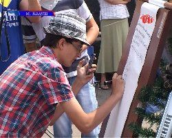В особливий спосіб вирішили звернутися калушани до президента Російської Федерації. Зібравшись на Площі Героїв, вони написали послання від бандерівців лідерові терористів Володимиру Путіну. Ініціатори такої неординарної акції - активісти калуського Автомайдану. Відео ТРК РАІ