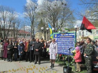 Стелу освятили священнослужителі всіх конфесій, які спільно з представниками місцевої влади, «Народної самооборони» та громадськості вшанували хвилиною мовчання пам'ять тих, хто віддав власне життя за краще майбутнє України, помолилися, виклали зі свічок символічний тризуб.