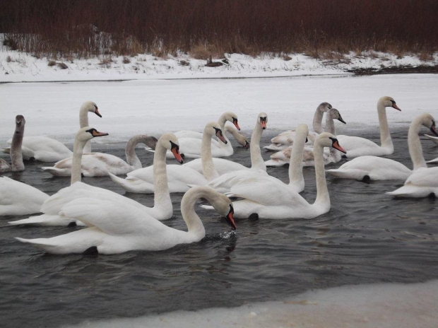 На Калущині селяни підгодовують півсотні лебедів, які оселились на річці