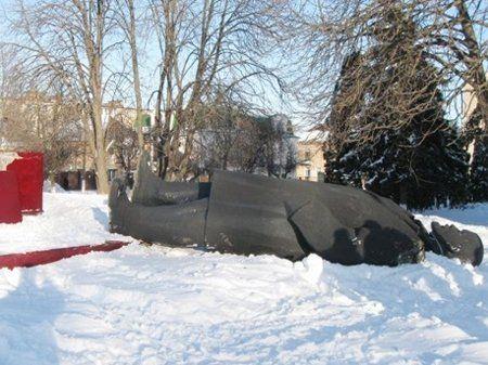 Як зазначають в міліції, невідомі за допомогою лебідки та тросу повалили пам’ятник, в результаті чого пошкодили пам’ятник висотою близько 6 метрів.