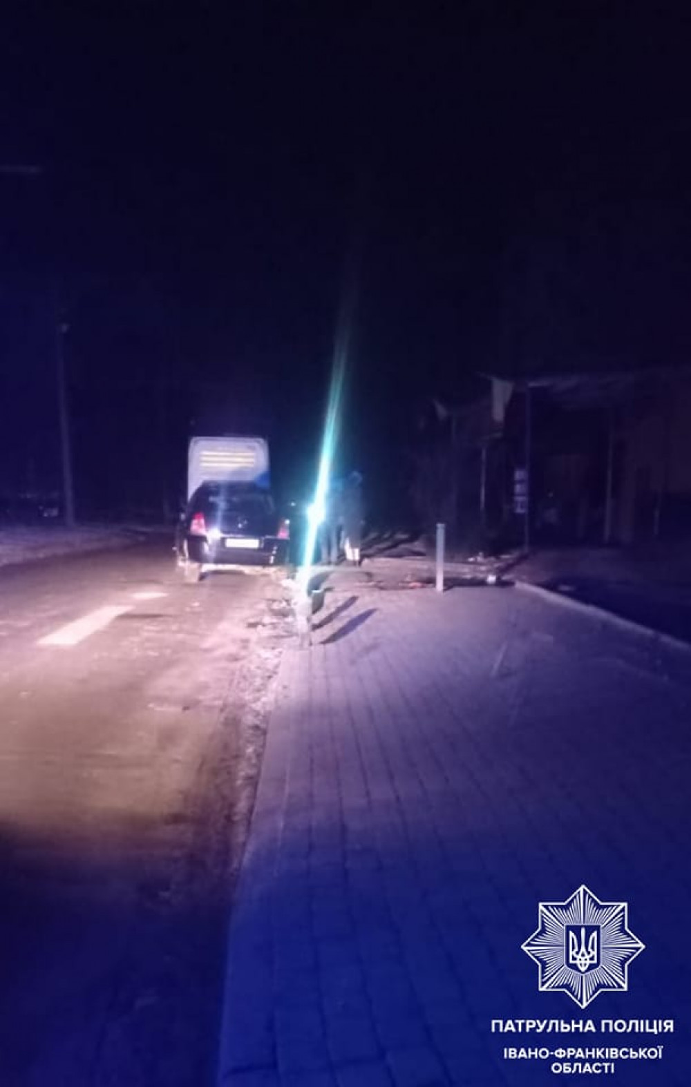 Екіпаж, що прибув на місце пригоди встановив: водій автомобіля Opel не дотримався безпечного швидкісного режиму, не був уважним за кермом та допустив наїзд на дорожній знак та металеві стовпці, інформує пресслужба патрульної поліції в Івано-Франківській області.