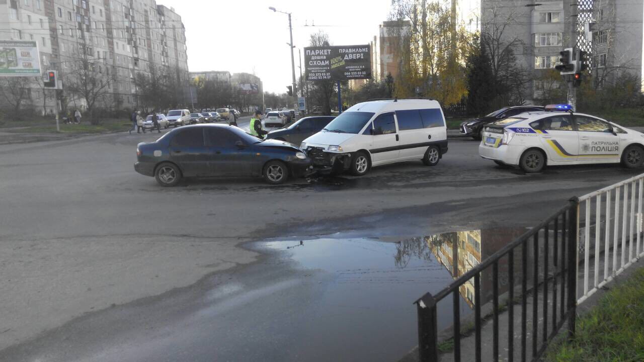 Чергова дорожньо-траспортна пригода в Івано-Франківську. Цього разу на перехресті вулиць Івасюка - Миколайчука - Івана Павла ІІ зіткнулись авто "ВАЗ" та "Пежо".