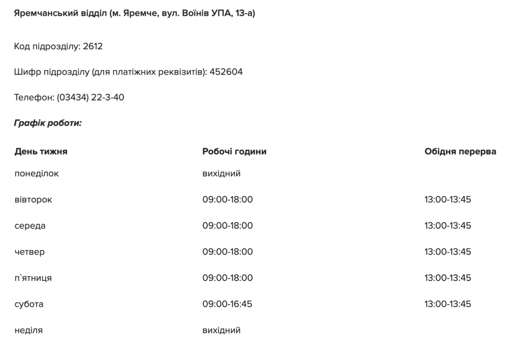 Адреси і графік роботи новостворених відділень дивіться нижче.