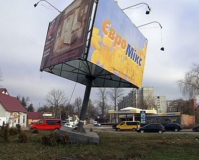 На Прикарпатті автобус зніс кількатонний рекламний стовп