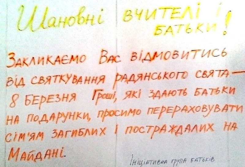 Батьки франківських школярів закликають, гроші зібрані на свято передати у Фонд постраждалим Майдану, пише Малакава.