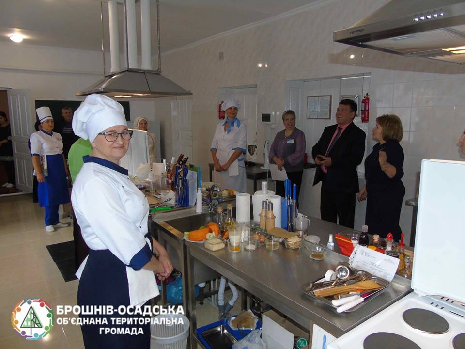 Розпочався конкурс із практичного завдання, яке учасниці мали можливість виконувати у капітально відремонтованому приміщенні виробничої майстерні. Світле просторе приміщення кухні, облаштоване за сучасними стандартами, неабияк надихнуло професійних кухарів.