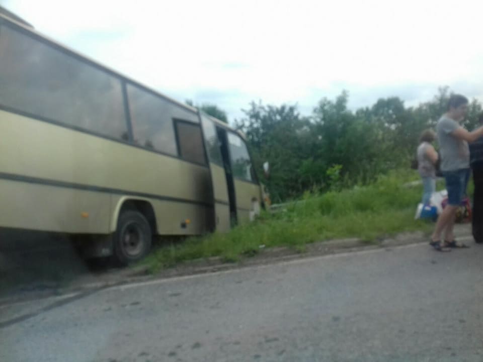 Внаслідок зіткнення автобув зупинився в кюветі.
