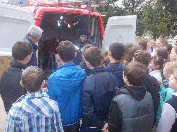 Дітям продемонстрували пожежно-рятувальні автомобілі та пожежно-рятувальне обладнання, що є на озброєнні у рятувальників. Також учні відчули себе у ролі справжніх рятувальників, примірявши захисні костюми, бойовий одяг та спорядження пожежних.