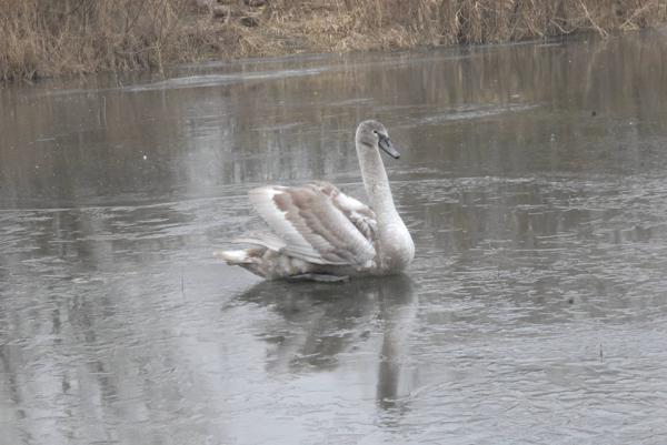 На Прикарпатті врятували молодого лебедя, який втратив сили на зимовому озері