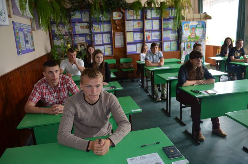 До початку тестування залишилося ще 20 хвилин. У коридорах стоять вступники, деякі ще щось повторюють. Двері всіх аудиторій відчинено, збоку вивішено список тих, хто повинен тестуватися саме в цьому класі. Адже все має бути чітко. Заходжу в один із класів, тут уже всі — за партами. Є ще трішки часу для спілкування.