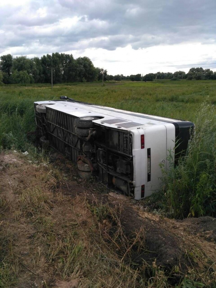 "39-річний киянин, керуючи автобусом "Mercedes 404", рухаючись із м.Яремче у напрямку Києва поблизу с.Птича не вибрав безпечної швидкості руху, не врахував дорожньої обстановки та злетів у кювет з подальшим перекиданням транспортного засобу на бік. Відповідно до медичного освідування водій, який у момент ДТП керував транспортним засобом, був тверезим", - повідомили у ГУ НП.