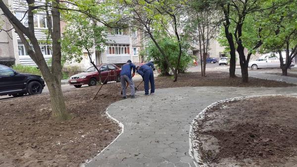 В Івано-Франківську тривають роботи з благоустрою скверу на Сахарова.