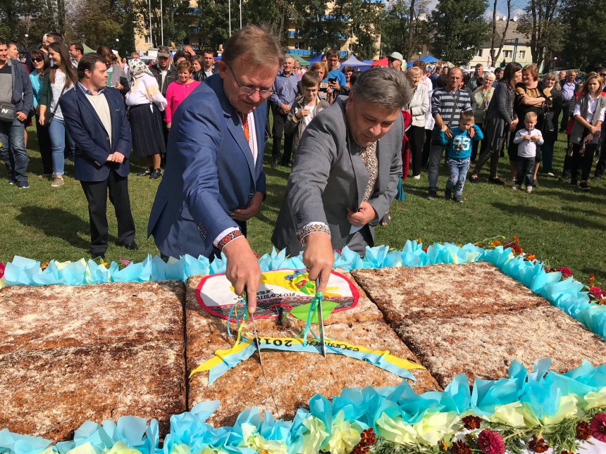 Після урочистої частини господарі району Богдан Свіщовський та Іван Угрин розрізали яблучний пиріг, який є символом фестивалю та пригостили ним гостей свята.