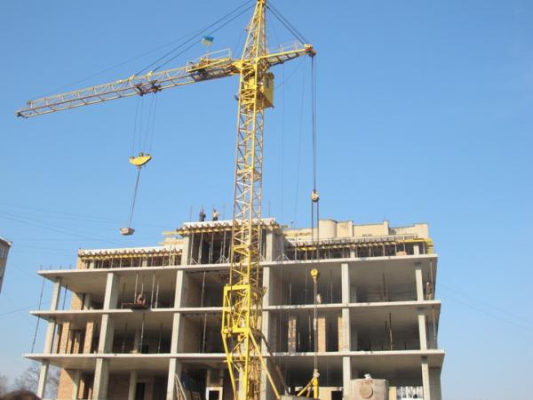 Будівництво йде повним ходом, працює бетонний міксер, кран та робітники, які вороже налаштовані.
