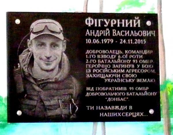 Учні школи читали вірші, співали пісень, запалювали свічки та молилися. Віднині встановлена меморіальна дошка нагадуватиме їм про ще одного Героя, який за Батьківщину віддав найдорожче. А для маленького сина Андрія Фігурного Максима бойові побратими передали прапор України.
