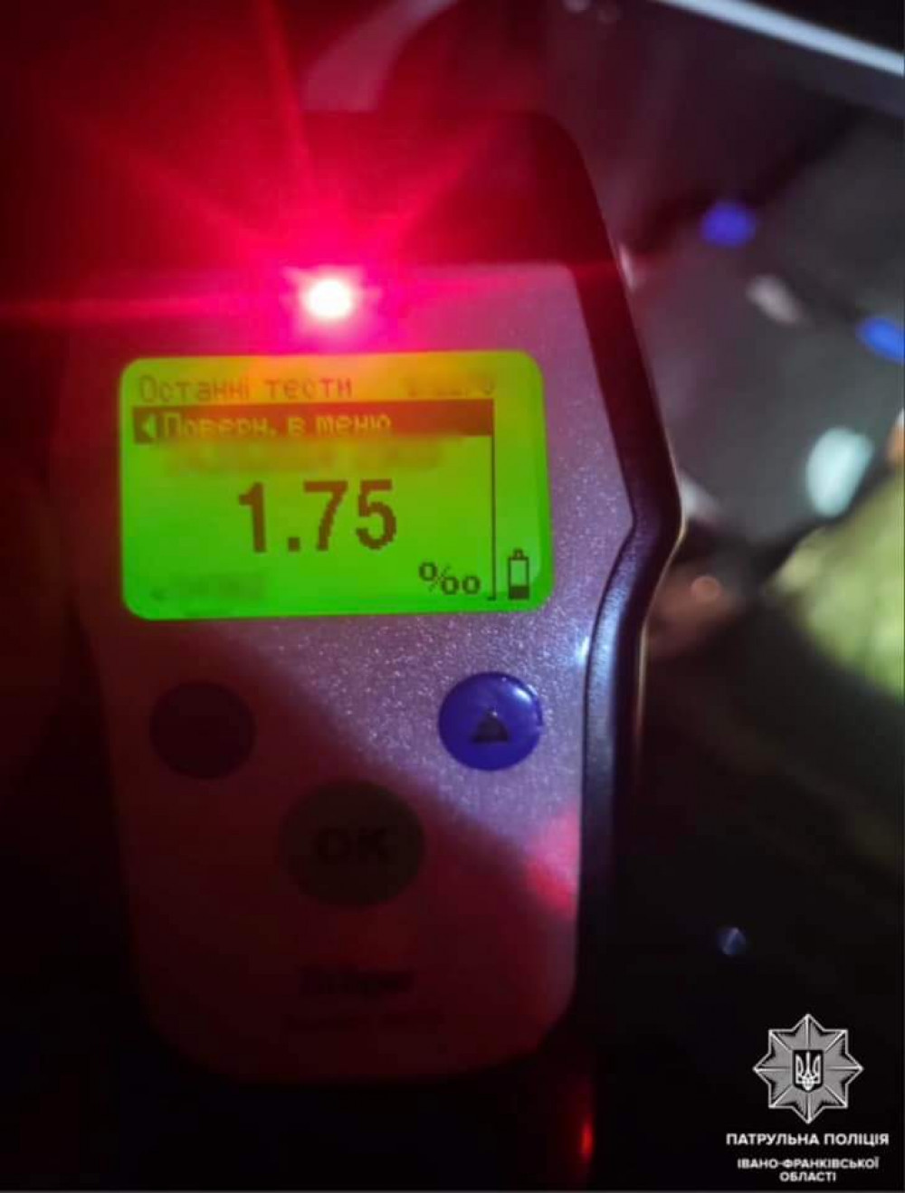Спілкуючись з 21-річним водієм, патрульні виявили у нього ознаки алкогольного спʼяніння. Водій пройшов освідування на місці. Результат — 1.75 проміле алкоголю у крові. Окрім того, у чоловіка було відсутнє посвідчення водія, а автомобіль перебуває в розшуку, у звʼязку з причетністю до ДТП.